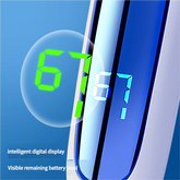 It is rechargeable, so you never worry about replacing batteries. Also, its LCD display shows battery life clearly.